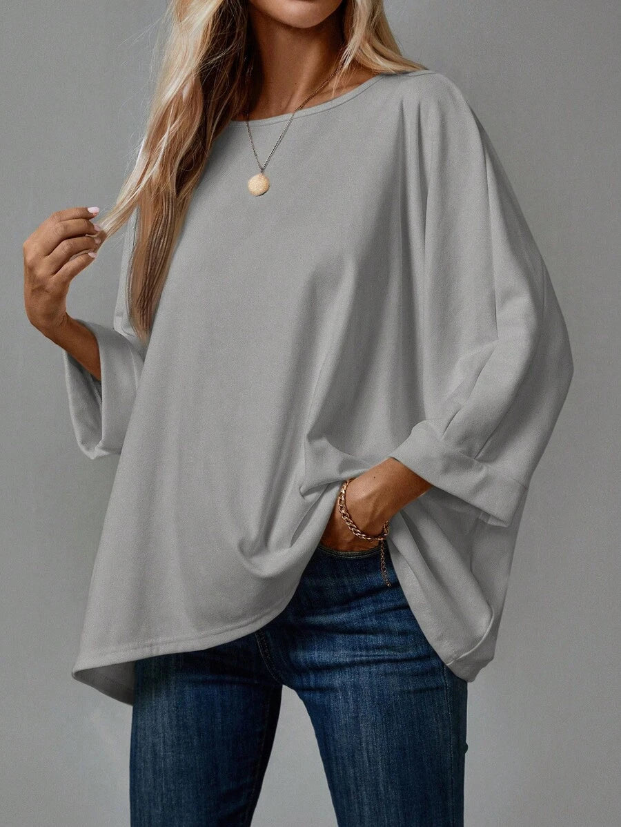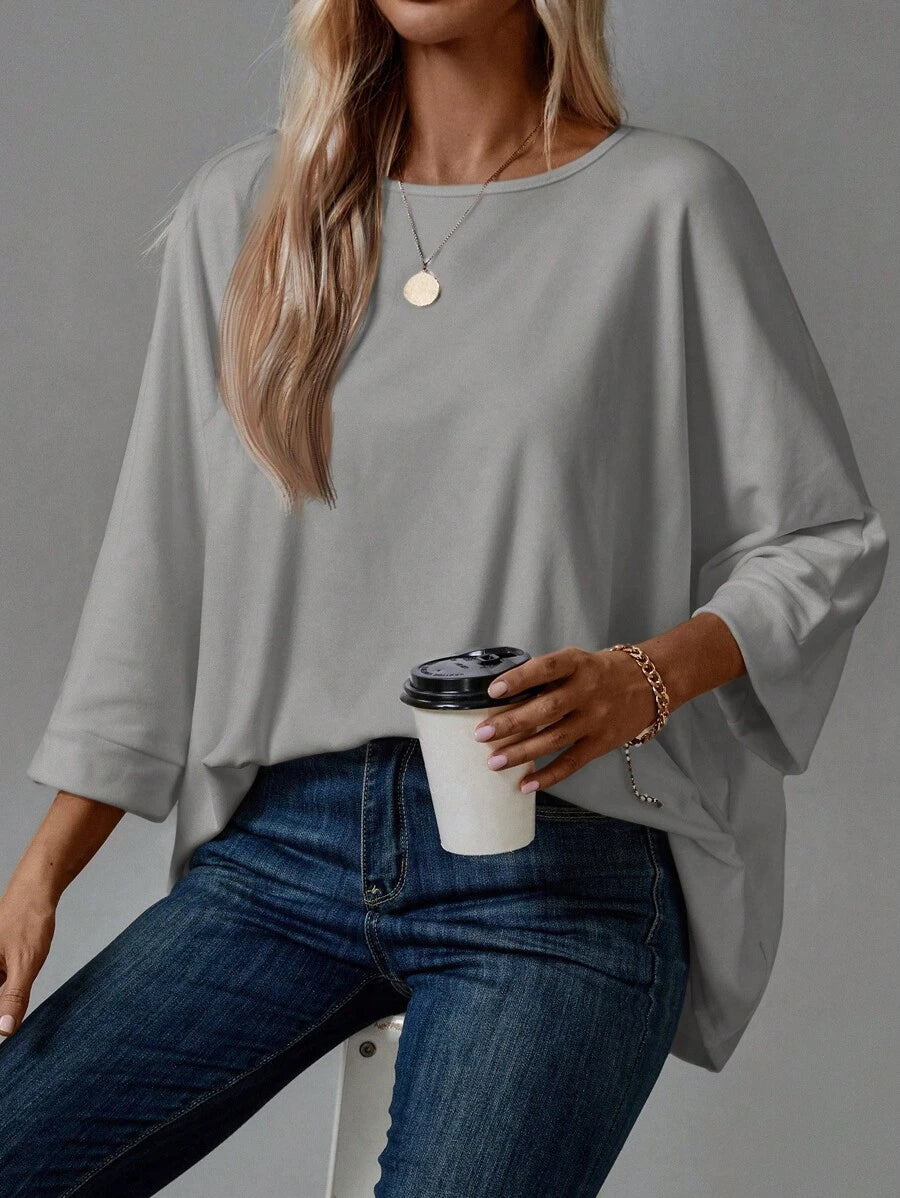 تيشرت كم طويل ده معمول من خامة ناعمة ومريحة، والتصميم للحجم الكبير مريح جدًا على الجسم من غير ما يبقى واسع جدًا أو مشدود. اللون السادة بيدي شكل بسيط وسهل تنسيقه مع بنطلون أو جينز، والقصّة مريحة بتخلي اللبس اليومي سهل من غير أي مجهود. مناسب لكل يوم وبستايل هادي وأناقة بسيطة.