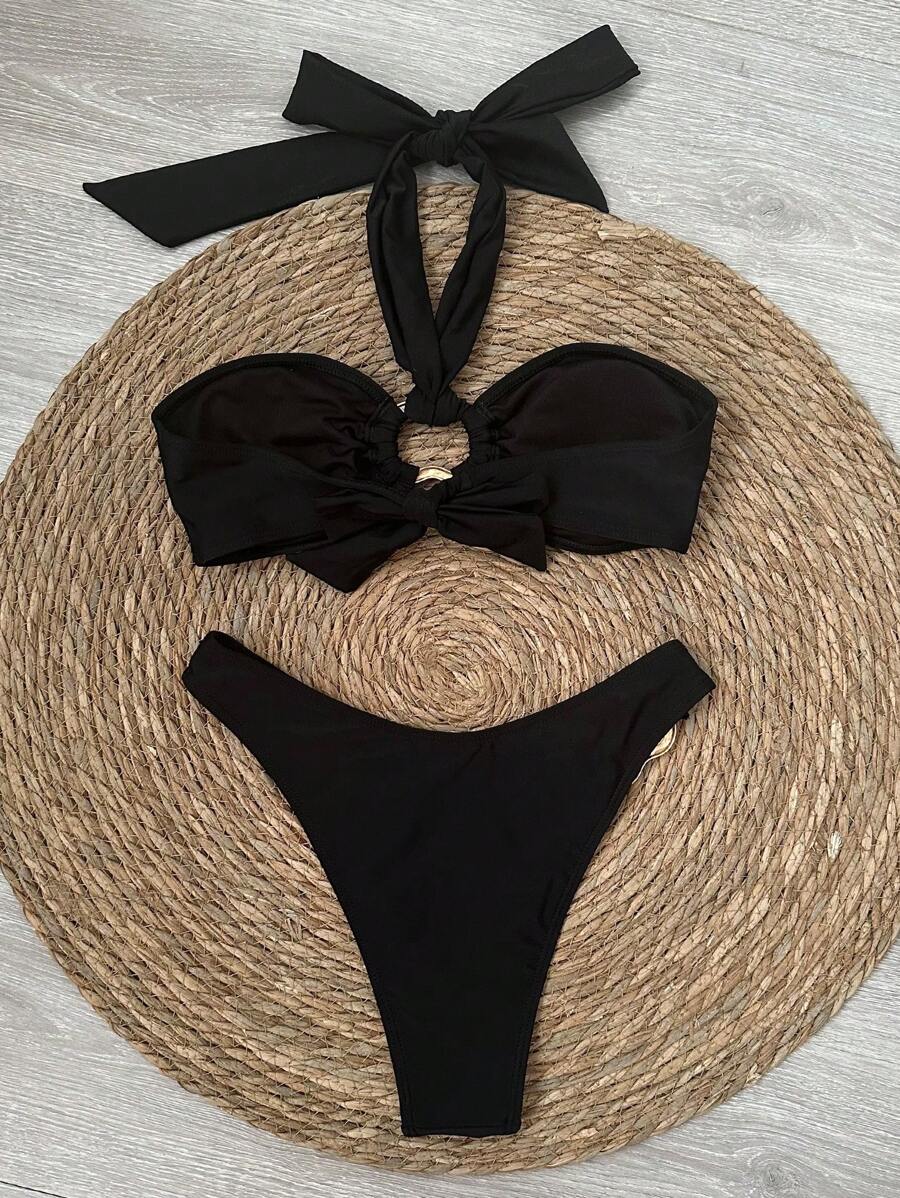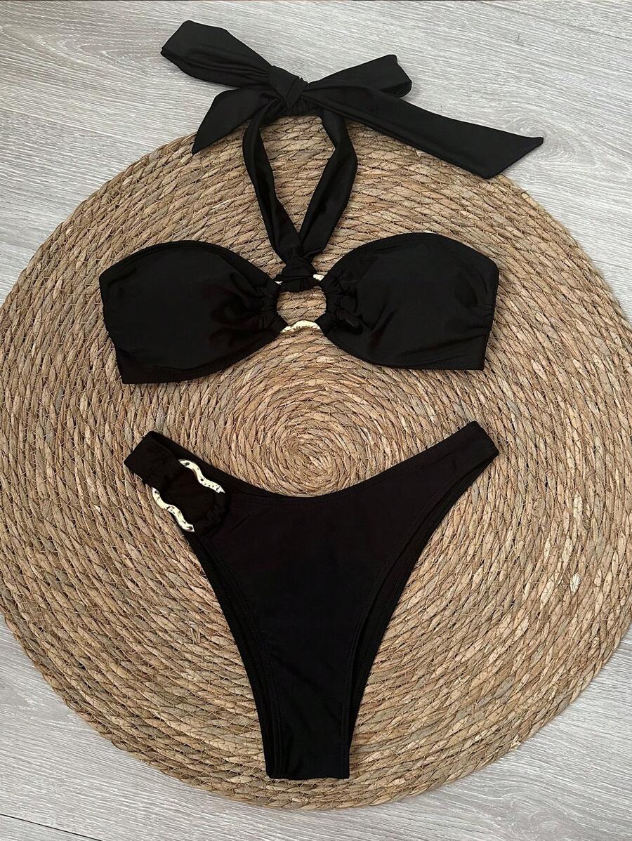 مايوه بكيني نسائي أسود بتصميم هالتر أنيق – إطلالة جريئة وجذّابة لصيف مثالي