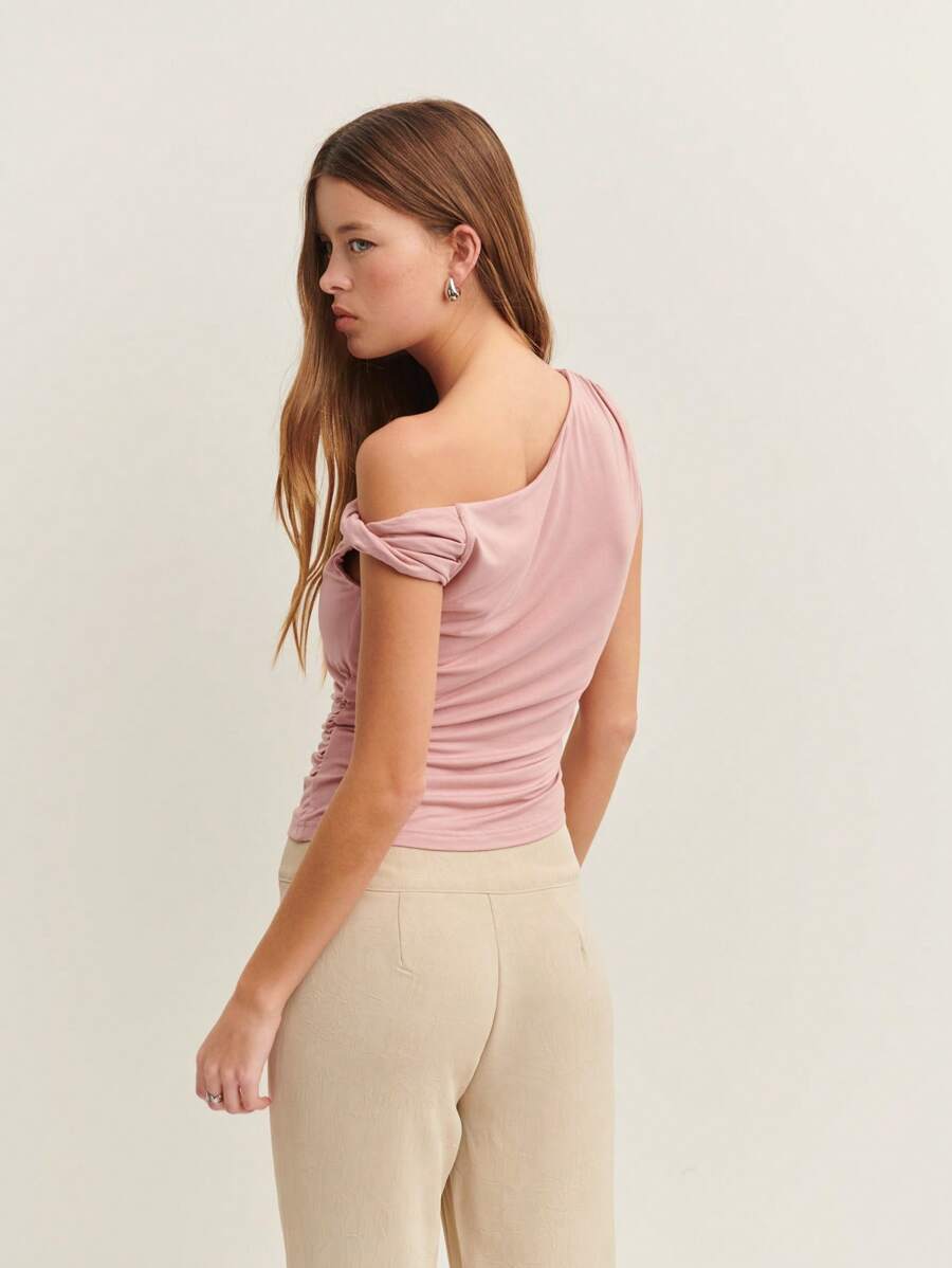 بلوزة نسائية بياقة غير متناظرة بقصّة ضيقة – shein