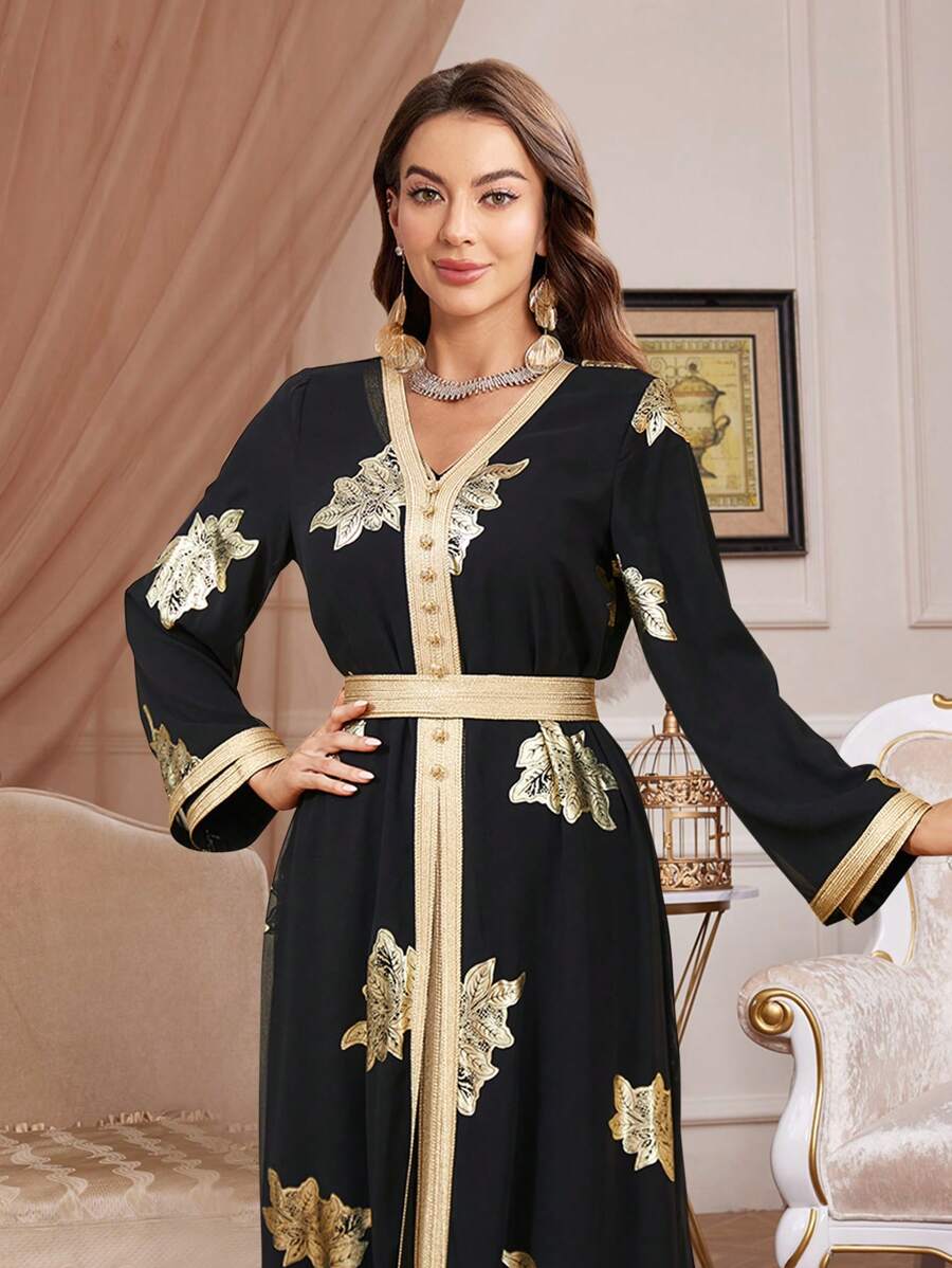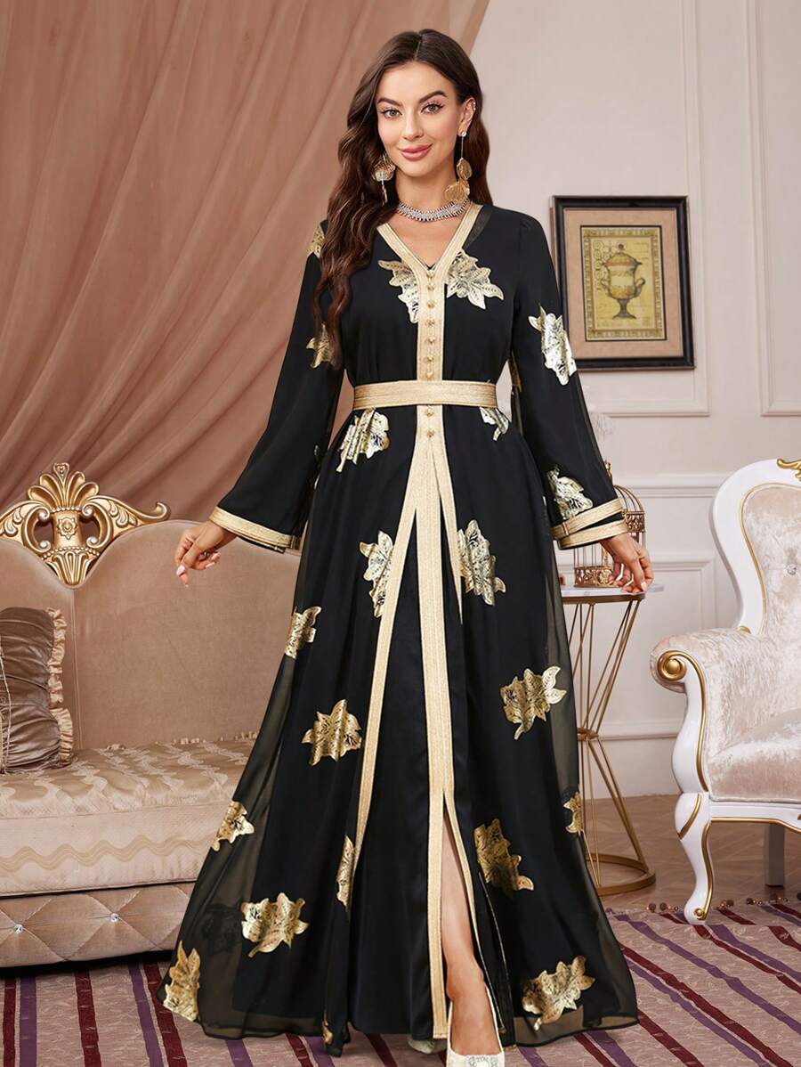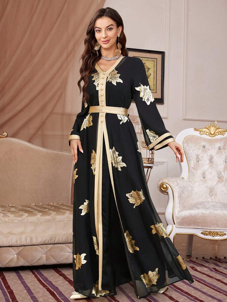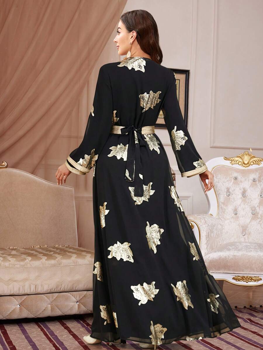 فستان نسائي طويل بنقشة زهور بأكمام طويلة