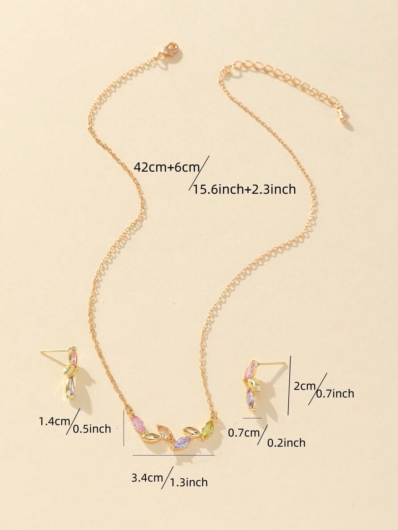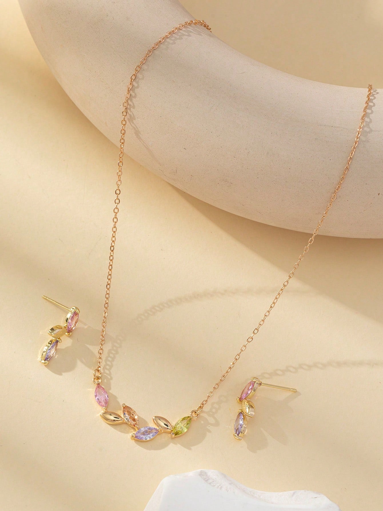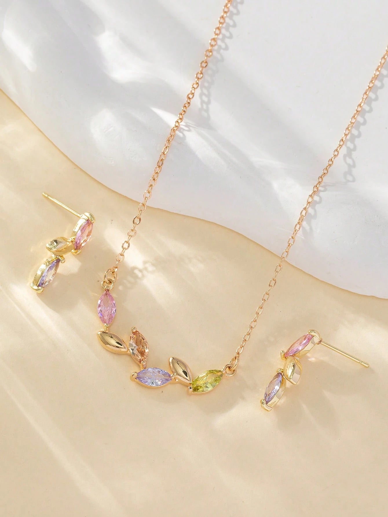 طقم مجوهرات أنيق بتصميم ورقة مزين بحجر الراين الملون، مصنوع من سبائك النحاس ومناسب للارتداء اليومي والحفلات ويعد خيارًا رائعًا للهدايا.
