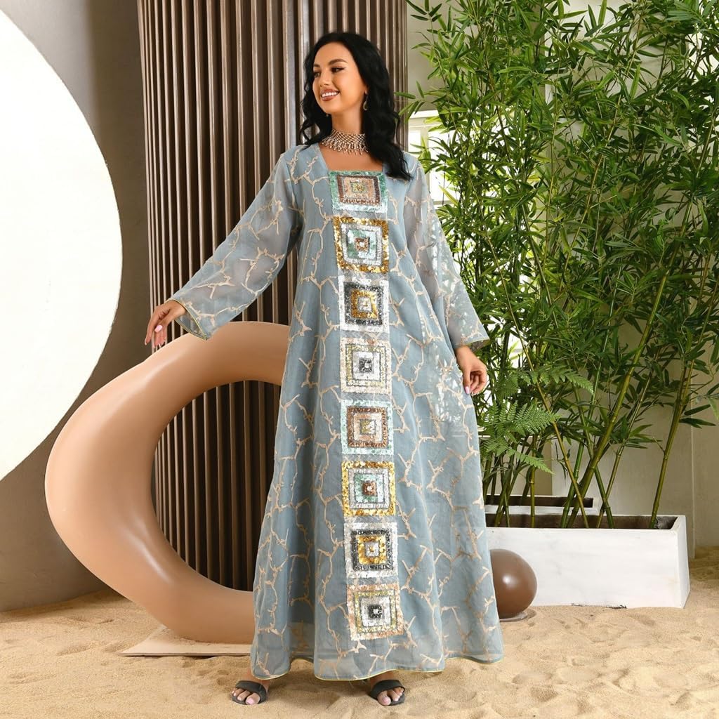 فستان بأكمام طويلة للنساء، عباية إسلامية، فستان ماكسي عربي إسلامي