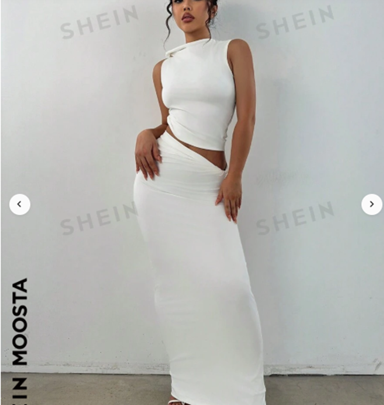 فستان نسائي طويل بلون موحّد بتصميم كتّ بدون أكمام وقصّة جانبية مكشوفة من Shein