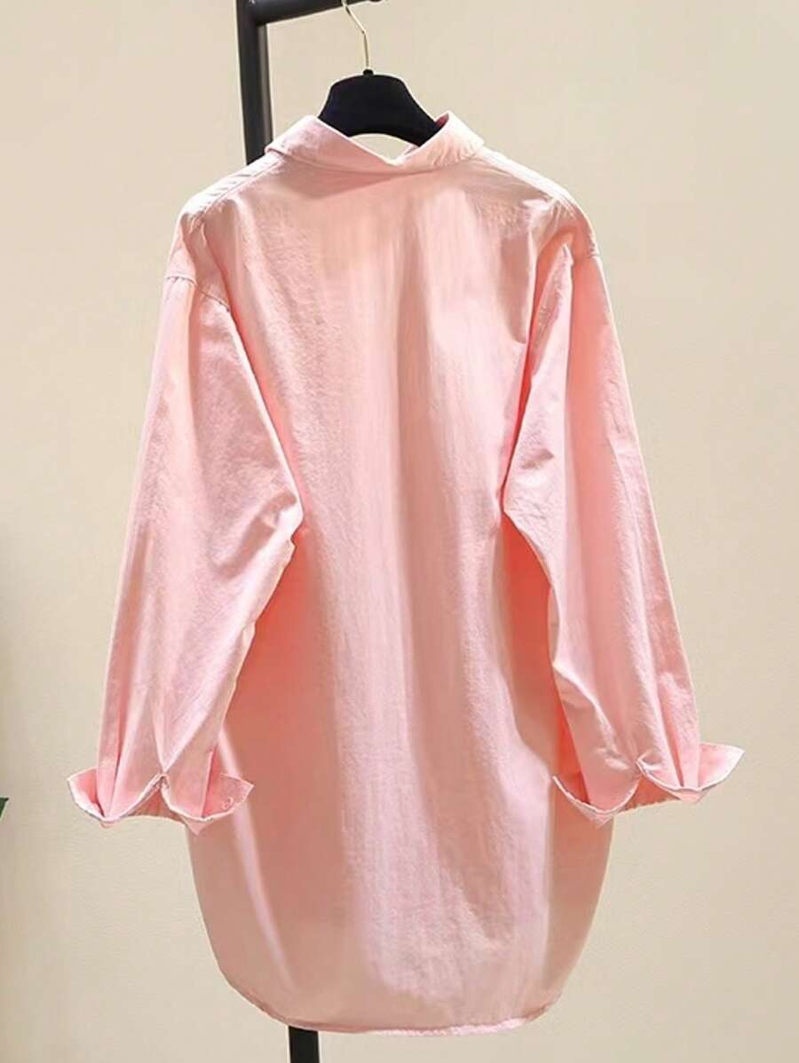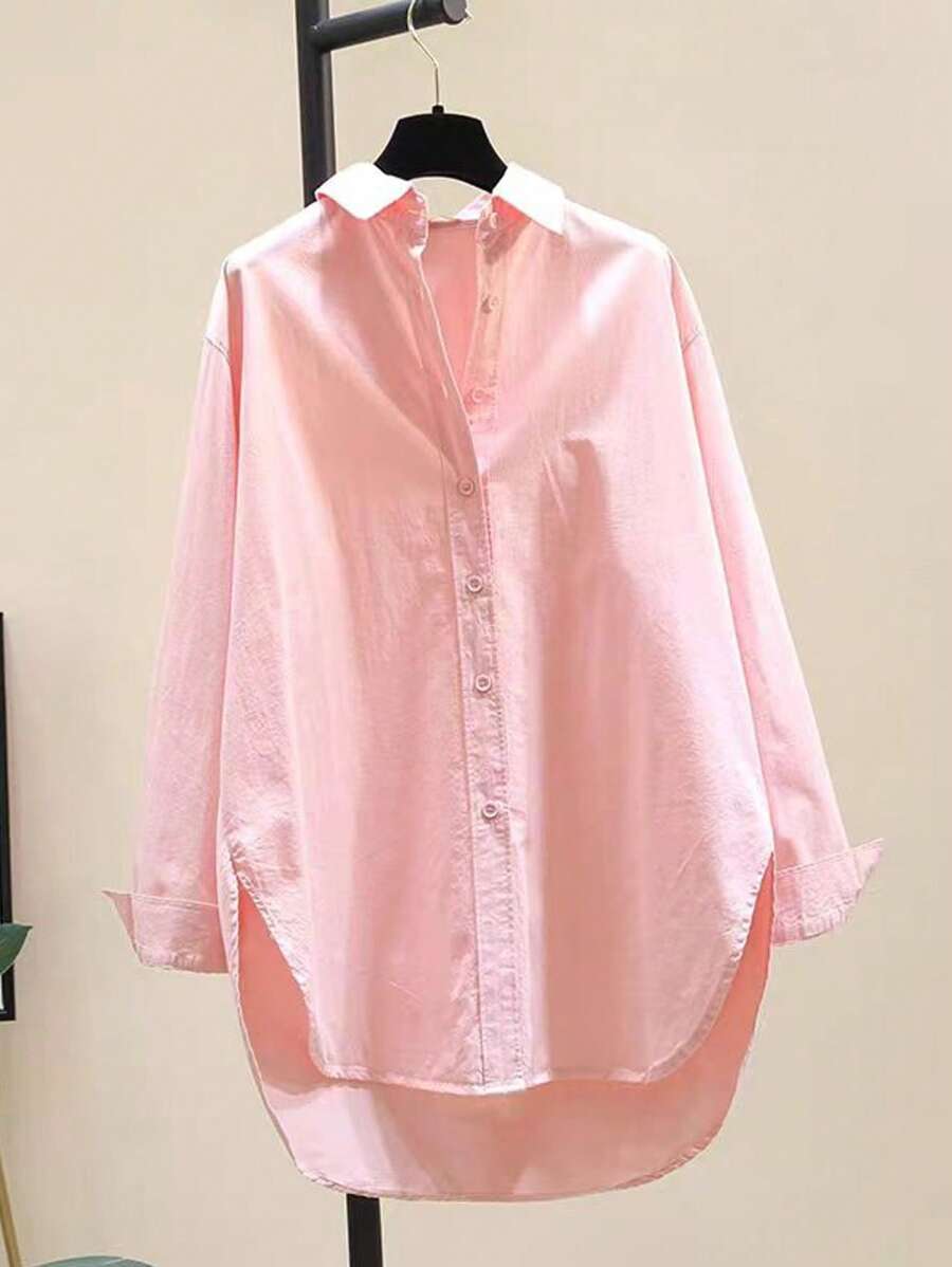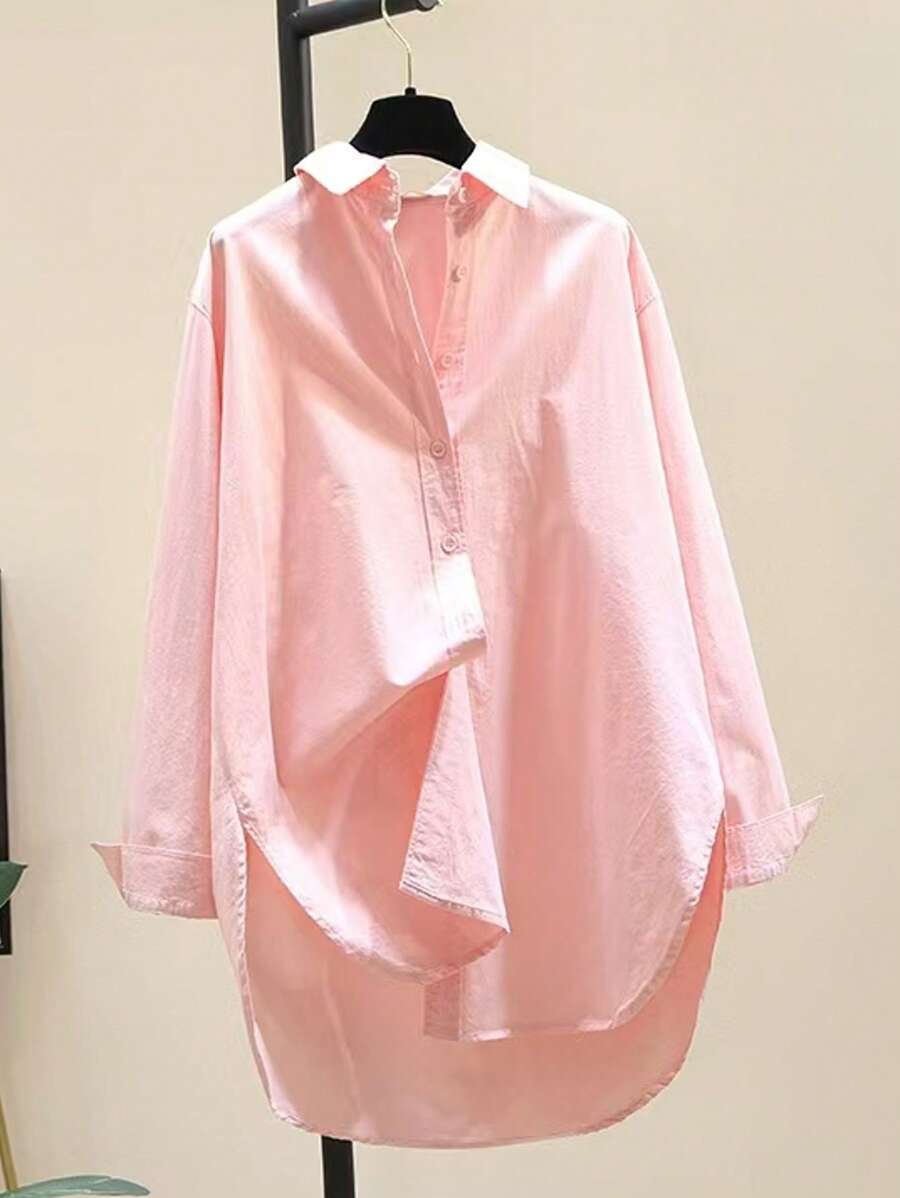 قميص نسائي فضفاض بأكمام طويلة وياقة دائرية بسيطة Shein