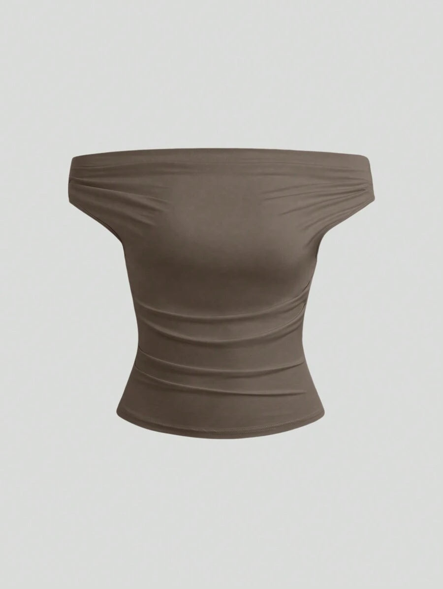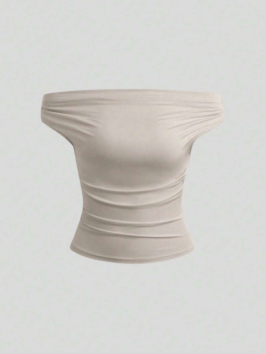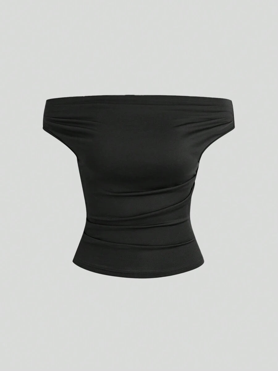 بلوزة سويترا النسائية ذات الأكتاف المكشوفة، بتصميم بسيط ولون سادةShein