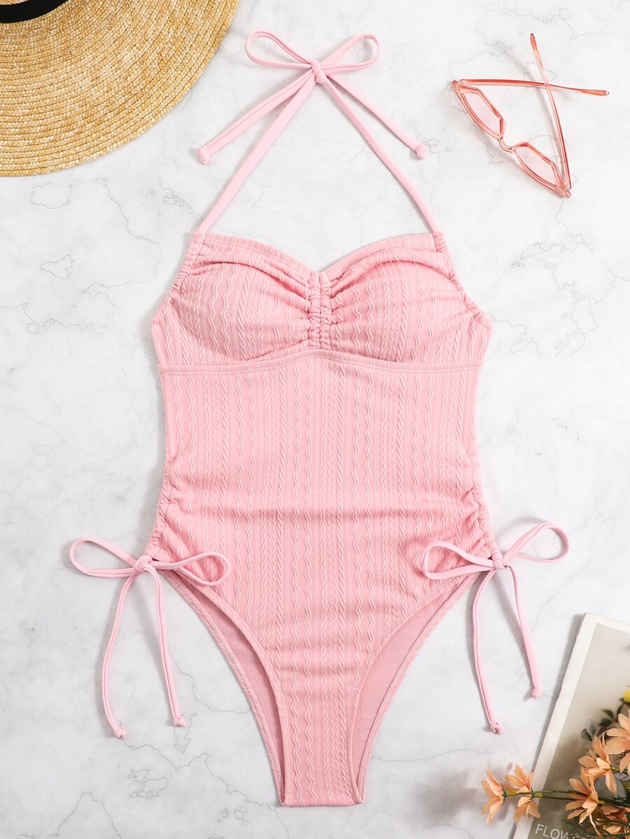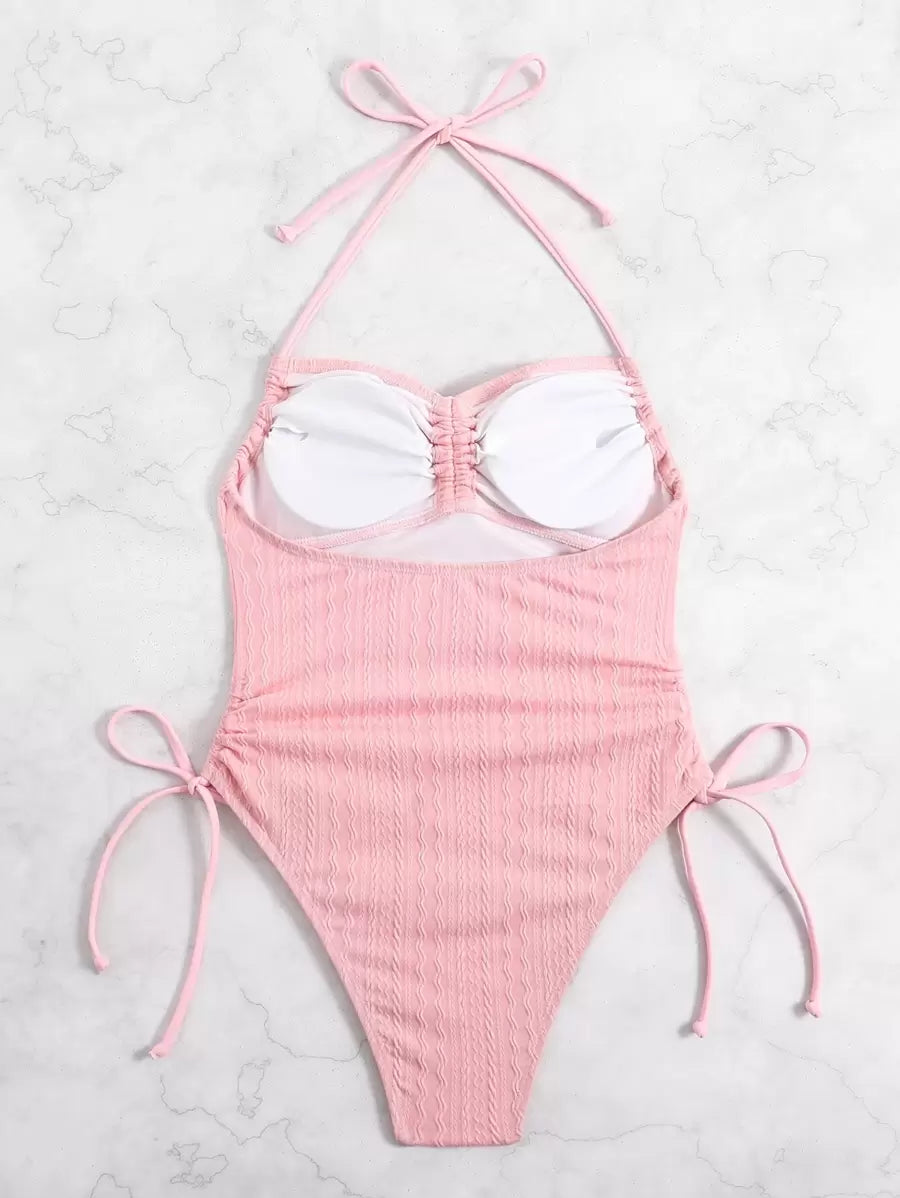 مايوه قطعة واحدة نسائي – تصميم هالتر بحبل جانبي صيفي للشاطئ