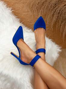 حذاء نسائي مدبب بكعب عالي باللون الأزرق