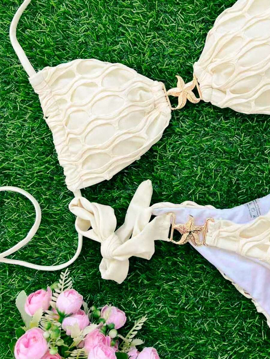 طقم نسائي صيفي 2 قطعة من Elenzga – توب هالتر بدون ظهر وبكيني جانبي مزين