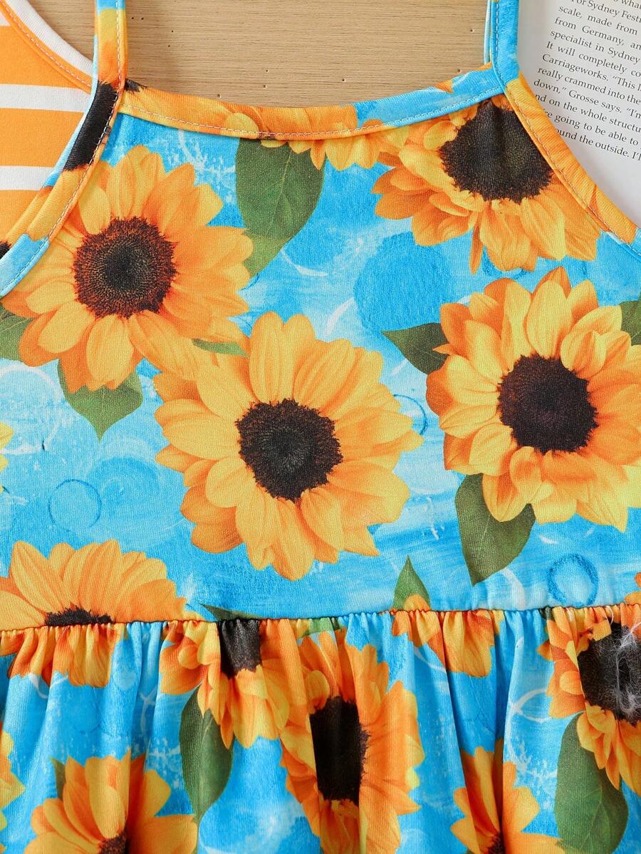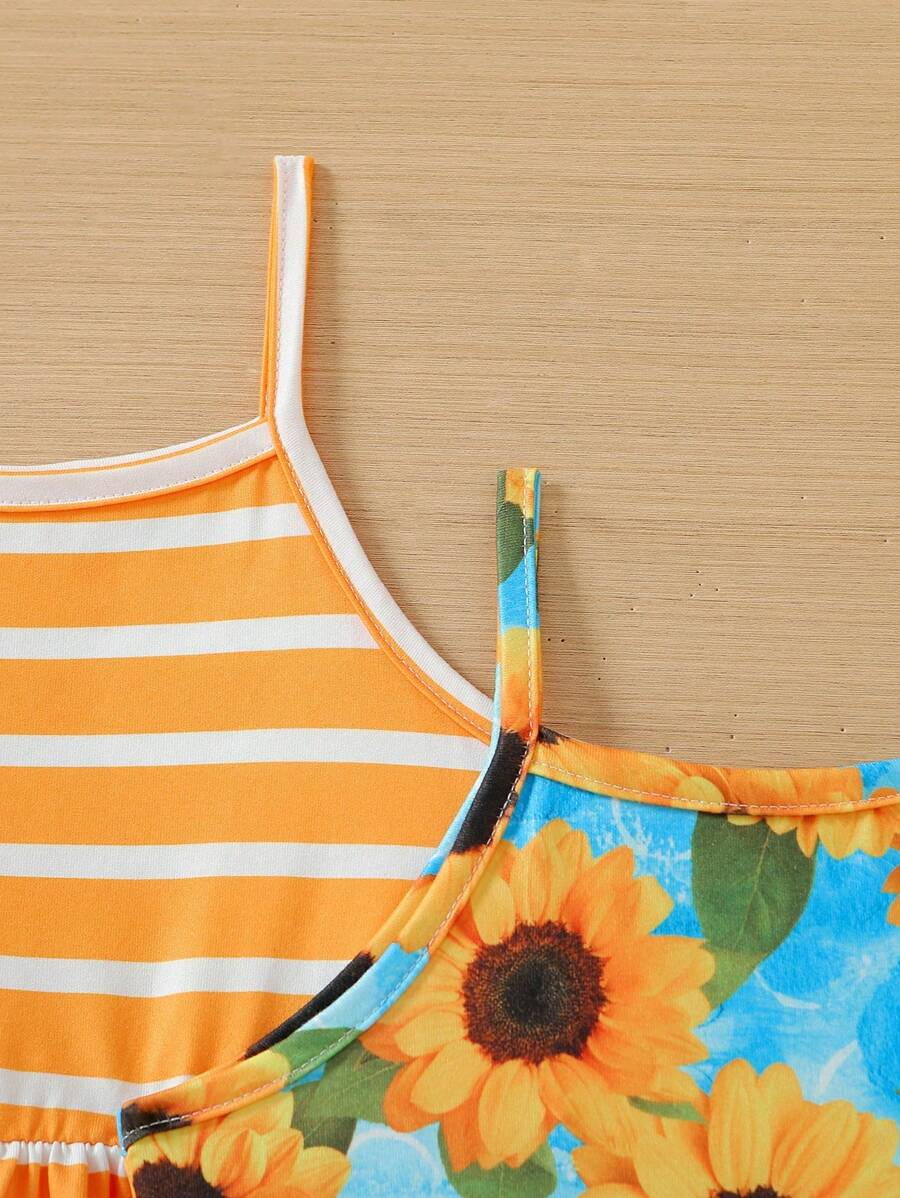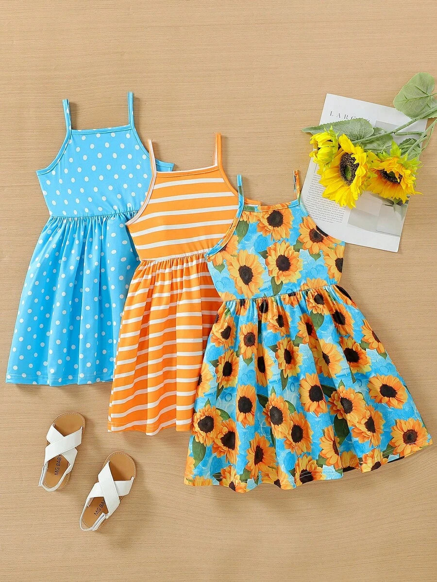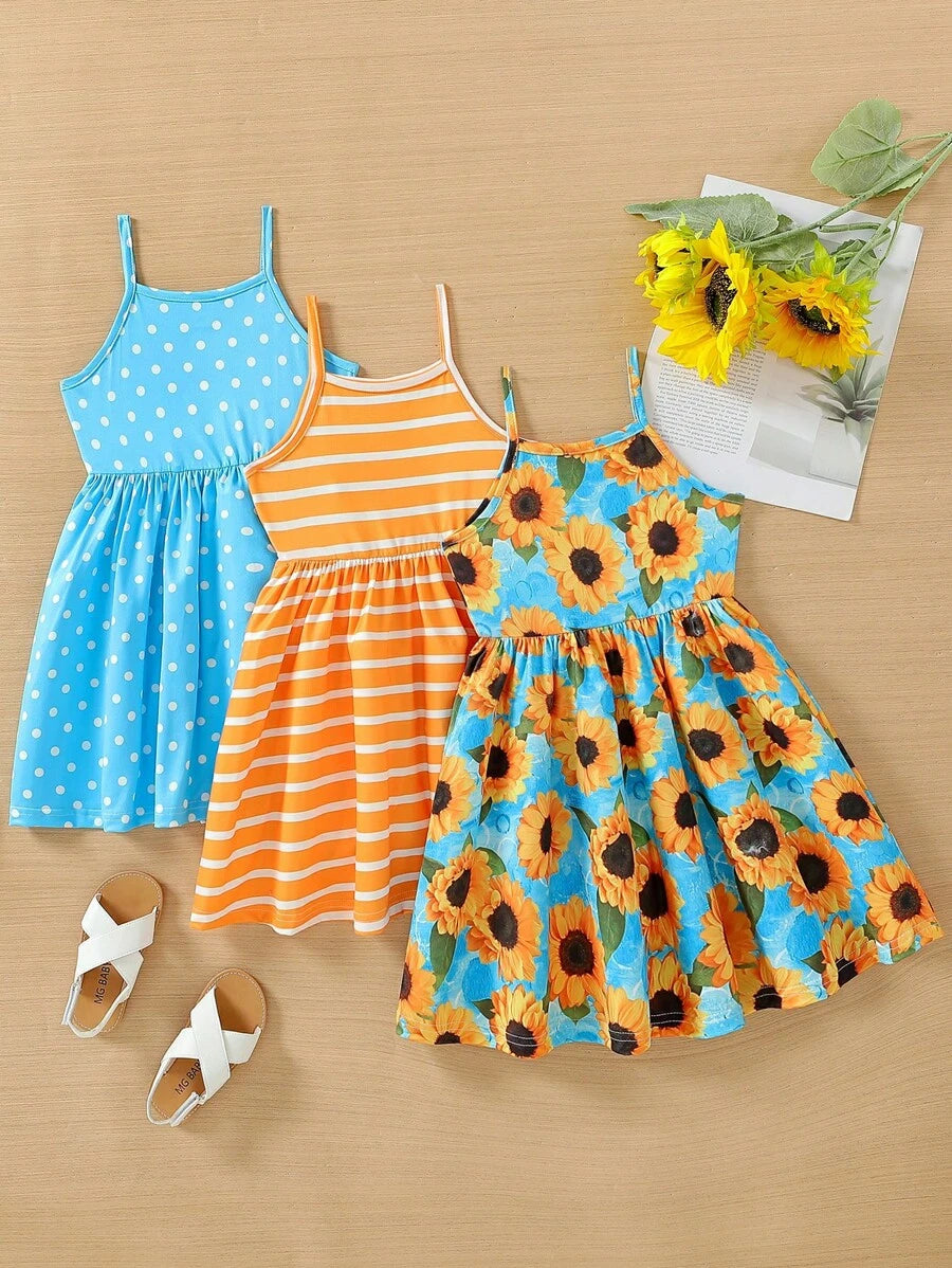 طقم فساتين صيفي بناتي بحمالات رفيعة (3 قطع)